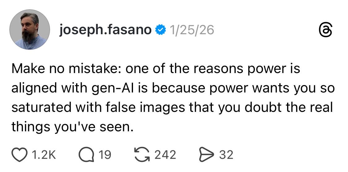 It is no secret amongst my friends and loved ones that I am an AI skeptic and a chatGPT hater. I rail against generative AI for lots of reasons — because it is environmentally destructive and disproportionately impacts marginalized communities, was trained using the work of writers and artists without their permission and often against their wishes, and removes what I believe to be necessary friction and inconvenience from our lives. (Not to mention that one of the cofounders of OpenAI is the top Trump donor of the past six months with a gift of 25 million dollars.) But I also fear the era of social media has already made us less human as a collective and that generative AI is only further blurring the lines between creature and machine.